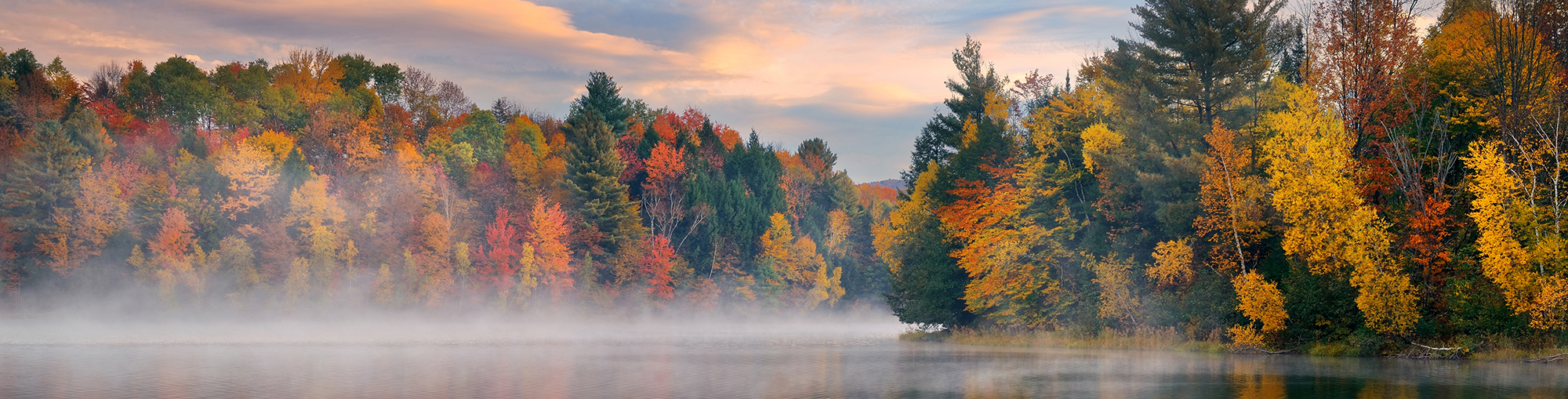 Immagine precedente Immagine successiva Lake Autumn Foliage Lake fog sunrise with Autumn foliage and mountains in New England Stowe